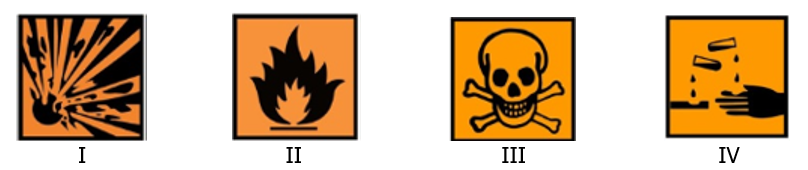 Manakah simbol bahan kimia yang harus dipasangkan pada kemasan bahan kimia tersebut?