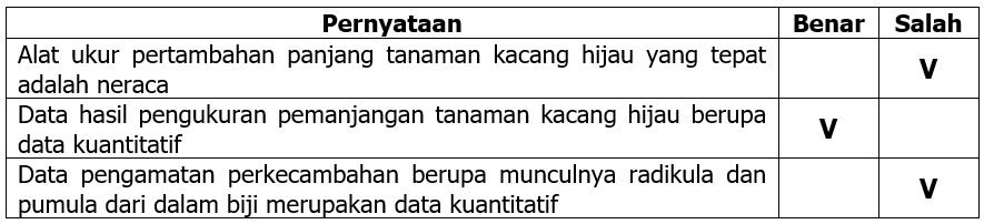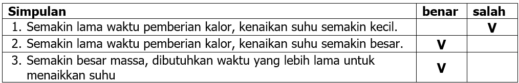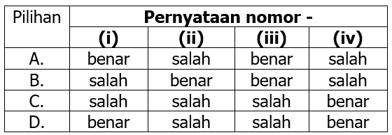 Berdasarkan tabel tersebut, simpulan yang benar dan salah adalah ….