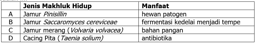 Berdasarkan artikel tersebut, pasangan jenis makhluk hidup dengan manfaat yang benar adalah ….