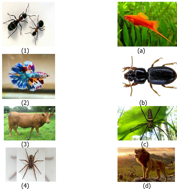 - (1) – (a), (2) – (b), (3) – (c), (4) – (d)