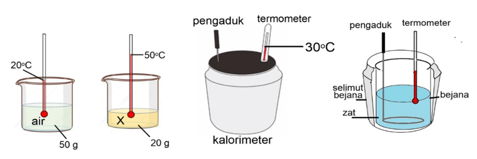Dafi menyelidiki pertukaran kalor pada dua zat (air dan zat X) yang dicampurkan di dalam kalorimeter.
