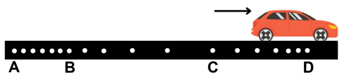 28. Sebuah mobil melaju pada lintasan lurus meninggalkan jejak hasil tetesan oli seperti ditunjukkan pada gambar berikut ini!