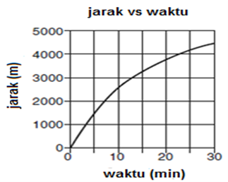30. Grafik berikut memperlihatkan jarak yang ditempuh oleh seorang pelari selama 30 menit perlombaan. Jarak diukur dalam meter (m) dan waktu diukur dalam menit (min).